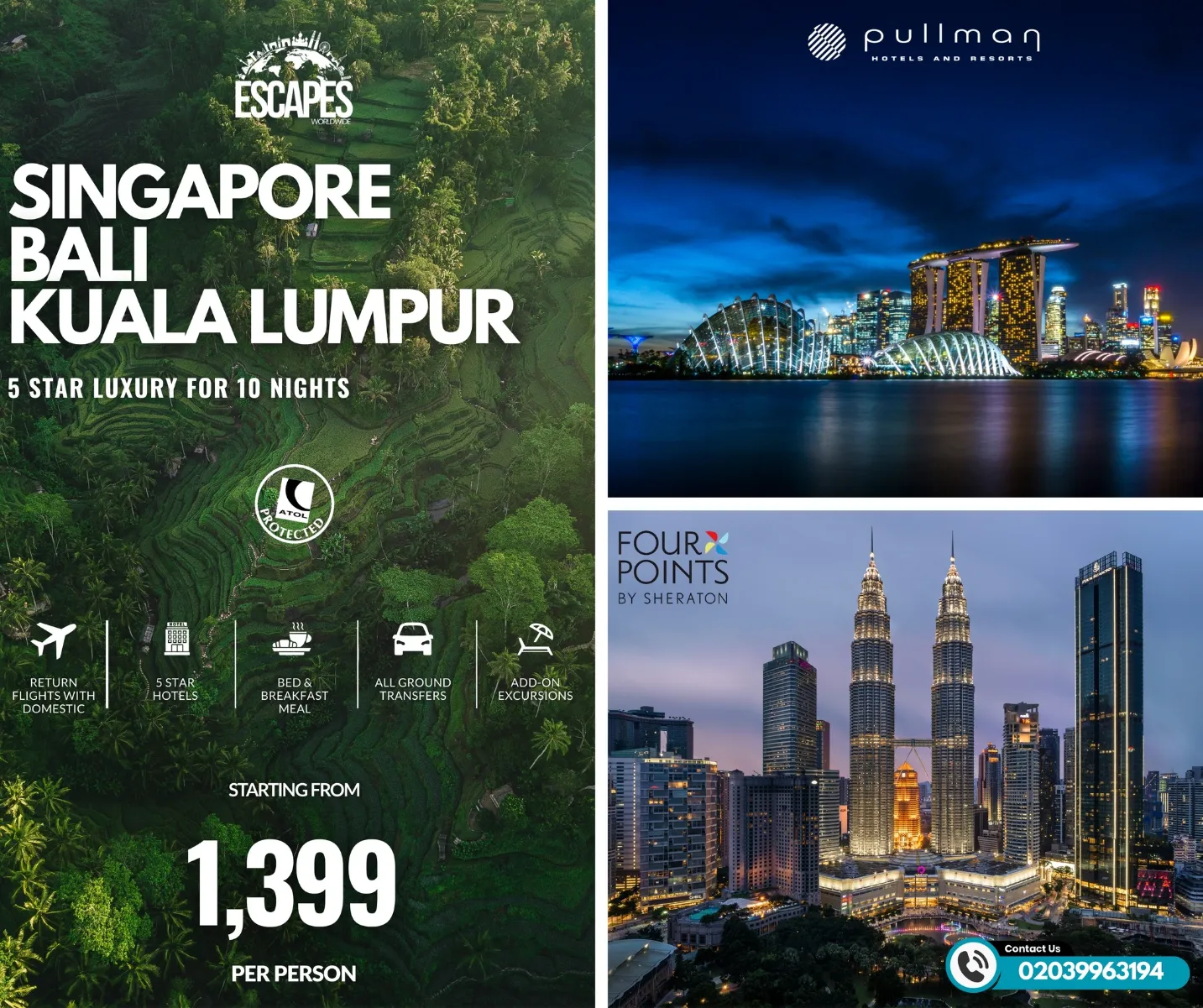 Experience the best of Asiaβs vibrant cities and tropical paradise on this 10-night escape. Explore cosmopolitan Singapore, unwind in a lake-view villa in Bali, and finish with the buzzing culture of Kuala Lumpur. With flights, transfers, and daily breakfast included, this is the perfect mix of adventure and relaxation.
